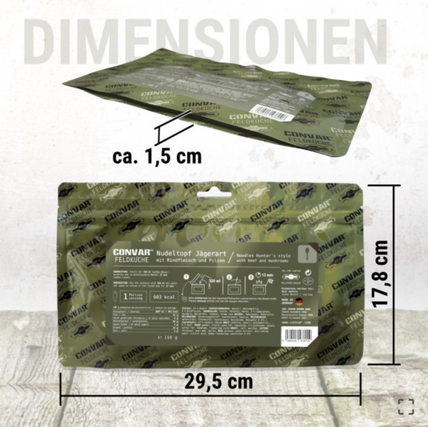 Convar Pasta met Zalm is ideaal voor kamperen, survivaltochten of wanneer je snel een voedzame maaltijd wilt bereiden, zonder in te boeten op smaak of gemak. Geniet van een warme maaltijd waar je ook bent!