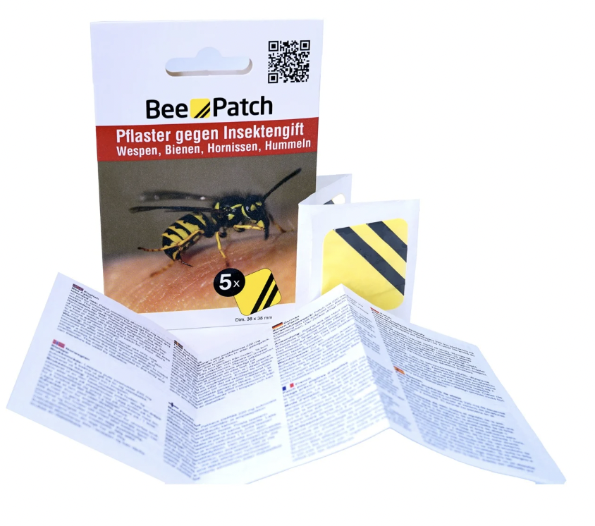 Na een insectensteek is het eenvoudig te gebruiken: verwijder eerst de angel, breng een druppel water aan op de gestoken huid en plak vervolgens de Bee-Patch pleister erop. Dankzij het osmoseprincipe zal de pleister het gif uit de huid trekken, de pijn verminderen en zwelling voorkomen.
